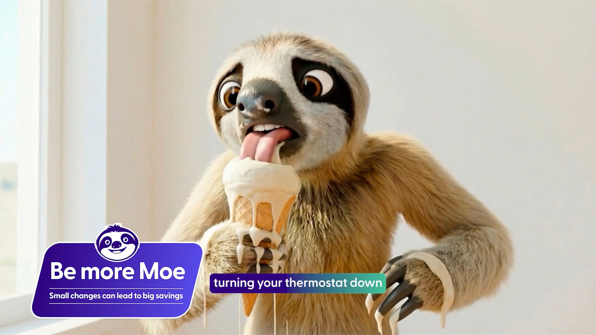 A good question. Sloths are one of the most energy efficient animals on the planet. But unlike other sloths, Moe doesn’t hang about when it comes to saving energy. Small changes can add up to huge energy savings.