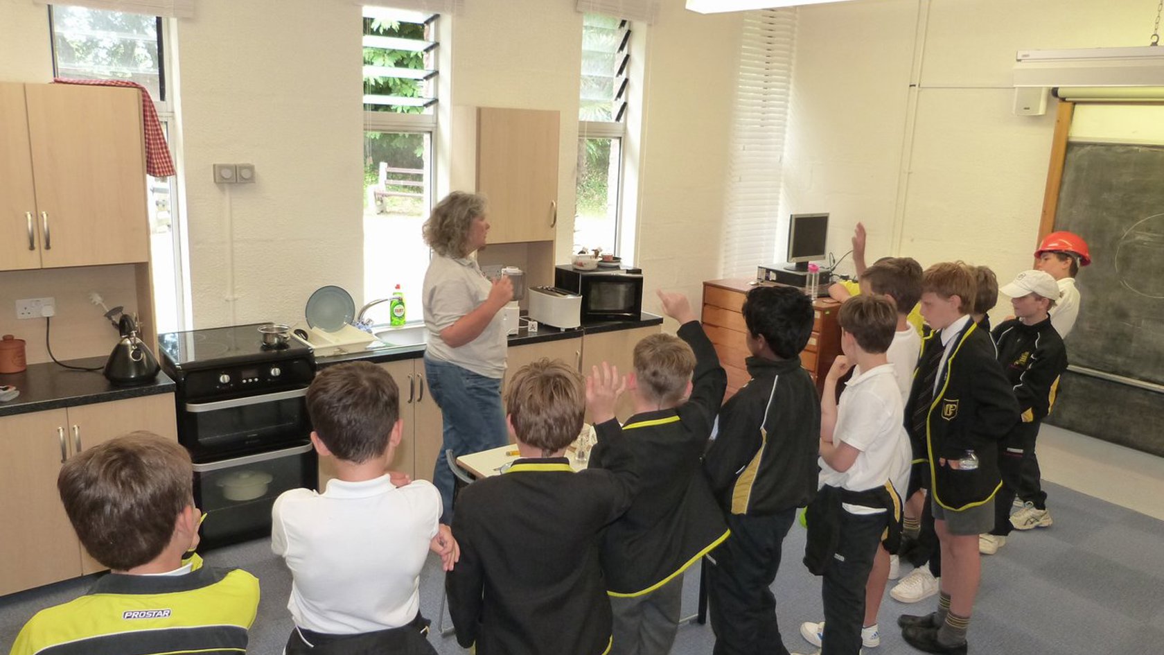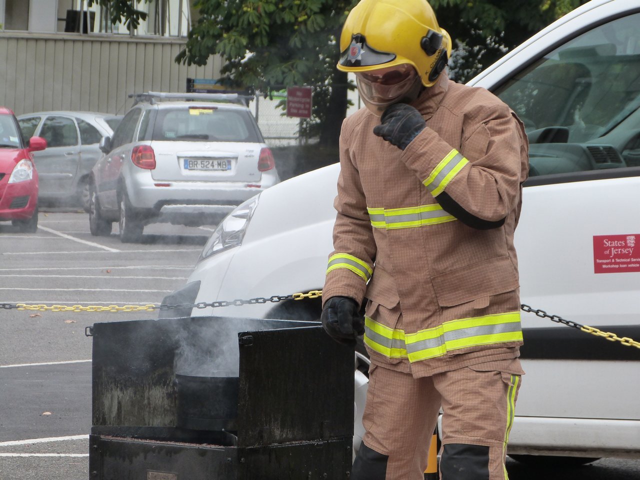 Jersey Electricity is pleased to again support Child Accident Prevention Jersey (CAPJ) Safety In Action which sees over 1,000 Year 5 pupils from all Jersey primary schools receive safety training during eight days of workshops at Highlands College. The children, in small teams, take part in six, fact-packed, interactive 20-minute workshops covering Safety in the Kitchen, Road Safety, Safe Play, Beach Safety, Fire and First Aid. And there’s no doubt the star of this year’s Safety In Action was the spectacular – and frightening – demonstration by the Fire and Rescue Service of what happens to a chip pan fire if you try and extinguish it with water. Thankfully, all the children watching knew that's definitely not the thing to do and braced themselves as the small flames from the burning pan of oil erupted over three metres high as the firefighter poured just a small cup of liquid on to them.